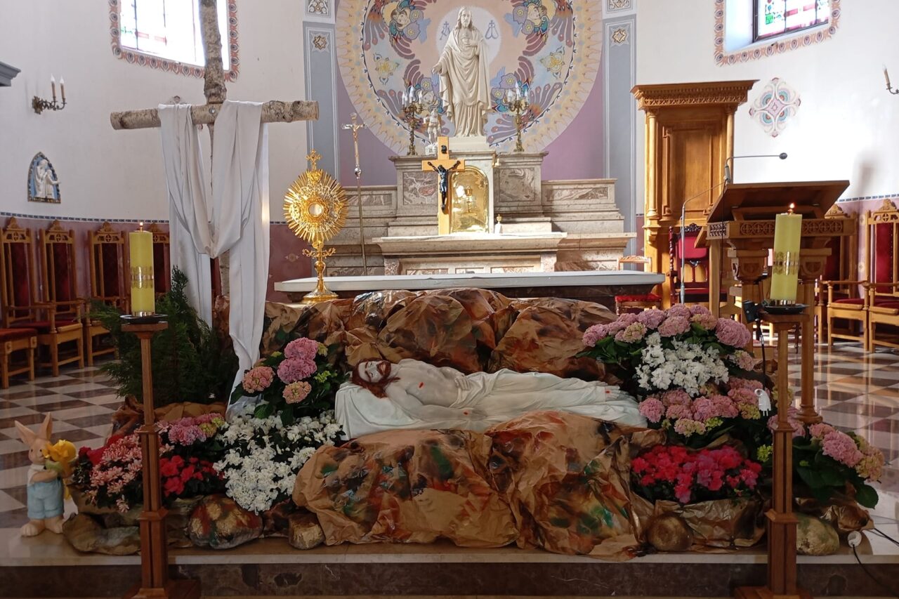 Wielki Piątek to dzień bez sprawowania Mszy Świętej. Czytany jest opis męki Pana Jezusa a wierni biorą udział w adoracji Krzyża.